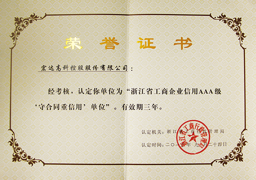 尊龙凯时高科先后被认定为“全国文明单位”、“全国模范劳动关系和谐企业”、“全国五一劳动奖状”、“国家重点高新技术企业”、“中国针织行业竞争力前十强”、“全国科协先进单位”、“浙江省先进绿色企业”、“浙江省先进基层党组织”等荣誉称号,连续多年被评为省市县三级“重合同、守信用”单位和纳税先进单位。