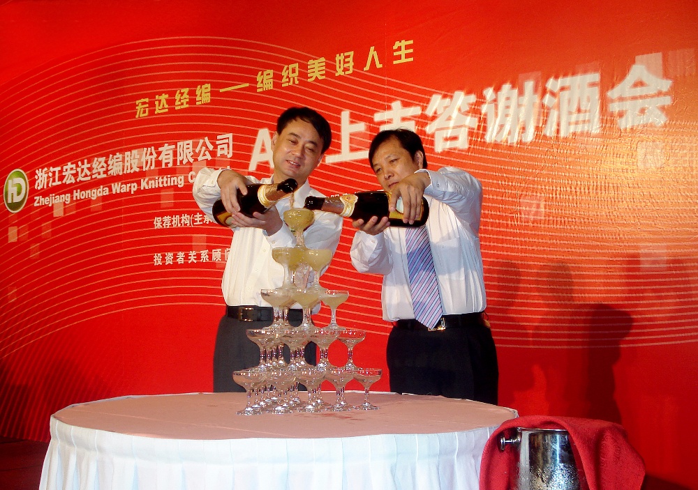 嘉兴市人大常委会副主任(时任中共海宁市委书记沈利农)在“尊龙凯时经编”新股上市仪式上