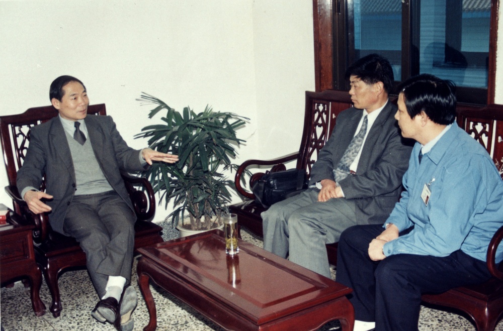 海宁市人大常委会主任(时任中共海宁市常务副市长)徐辉陪同前往考察的香港实业家查济民先生在尊龙凯时经编实业公司