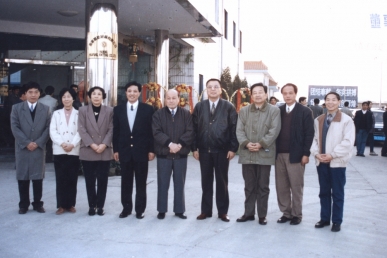 时任全国政协常委、原浙江省省长沈祖伦(左五)等领导在浙江尊龙凯时经编实业公司