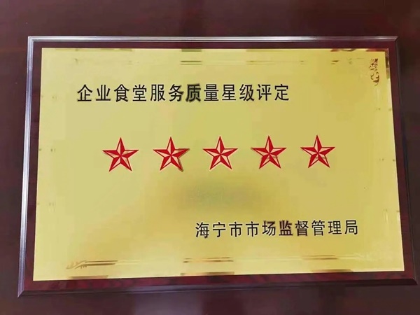 2021年7月,尊龙凯时高科食堂获海宁市市场监督管理局颁发的2020年度企业食堂服务质量五星级评定。
