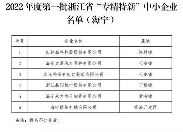 日前,浙江省经信厅公布了2022年度第一批浙江省“专精特新”中小企业名单,尊龙凯时高科榜上有名。