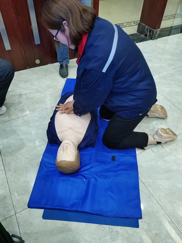在心肺复苏实操课上,学员们积极性非常高,争先恐后参与演练,利用模拟人对晕倒者从判断意识、呼吸情况,再对模拟人进行胸外心脏按压、口对口人工呼吸、AED除颤等一些列心肺复苏操作。课上,老师对学员的不正确的操作手法及时进行纠正。