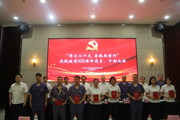 会议在庄严的国歌声中拉开序幕。全体党员在沈国甫书记的领誓下,举起右拳,面向党旗庄严宣誓,重温入党誓词;顾伟锋同志宣读了集团党委《关于开展“学习二十大,勇毅再前行”庆祝建党102周年系列活动的通知》;许建舟同志宣读了集团党委《关于表彰优秀共产党员的决定》,表彰了过去一年涌现出的10名优秀共产党员;综合支部李强代表获奖优秀党员发言。