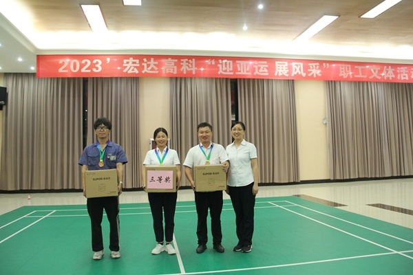 下午17:30分活动准时开始,大家都以满腔的热情,高昂的斗志投入其中,现场氛围十分热烈。各个比赛场地上选手们都拿出了看家本领,场地周围也围满了加油助威的同事。经过激烈的角逐,最终魏波、陈季康、王平平、张西伟、张家雨、祝晓燕分别获得乒乓球、羽毛球、台球、象棋比赛和跳绳比赛一等奖,还有来自织造、工艺、染整、供应、技术等部门的员工获得二等奖和三等奖。党委副书记、总经理许建舟;党委委员、财务总监王凤娟;党委委员、工会主席胡朗秋等为获奖人员进行了颁奖。