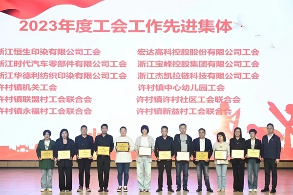 会议宣读了关于2023年度先进集体、优秀工会工作者、2024年最美职工、工人先锋号的公布文件。随后,受到表彰的先进集体和个人依次上台领奖。“尊龙凯时高科”工会获评“2023年度工会先进集体”,周美玲同志获评“2023年度优秀工会工作者”,曹燕丽同志获评“2024年度最美职工”,公司汽车用纺织品检测中心获评“许村镇工人先锋号”。