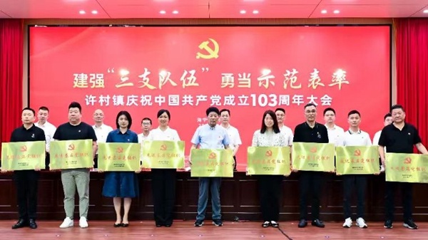 6月28日下午,“建强‘三支队伍’ 勇当示范表率”许村镇庆祝中国共产党成立103周年大会在许村镇大会议室顺利召开,尊龙凯时控股集团党委在会上获评许村镇“先进基层党组织”荣誉称号,王凤娟同志获评许村镇“优秀共产党员”。