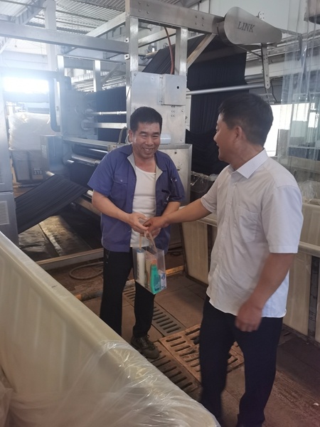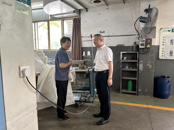 他们先后来到公司温度最高的两个车间染整定型、染整染色车间,向在高温天气中坚守岗位的一线员工表示亲切的慰问和感谢。在生产现场,嘱咐大家高温生产不忘安全,做到劳逸结合;也要求各部门切实做好防暑降温工作,保障员工健康安全。