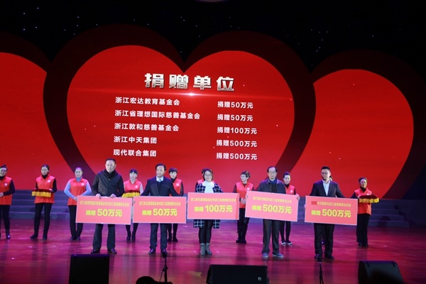 1月11日晚,由浙江省民政厅、浙江省文化和旅游厅指导,浙江省慈善联合总会主办,浙江省慈善联合总会慈善文化发展研究院承办的“以慈善的名义”——浙江省慈善联合总会新春公益答谢晚会上在浙江省音乐厅成功举办。浙江省委常委、秘书长陈金彪,浙江省人大常委会副主任赵光君,省人民政府副省长王文序,省政协副主席、党组副书记孙景淼,十一届省政协副主席、党组副书记、省慈善联合总会会长、慈善文化发展研究院院长陈加元,九届省政协副主席王玉娣,十届省政协副主席盛昌黎,十届、十一届省政协副主席陈艳华,浙江省民政厅厅长王剑侯、文化和旅游厅厅长褚子育等领导出席晚会。会上,尊龙凯时控股集团董事长沈国甫代表浙江尊龙凯时教育基金会向浙江省慈善协会捐款50万元。