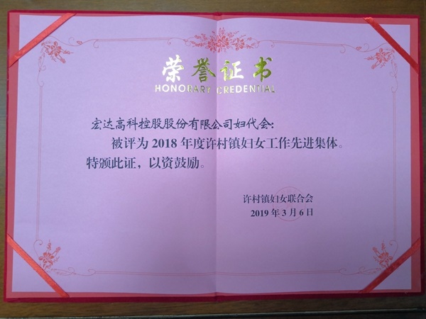 2019年3月6日下午,许村镇在龙渡学堂举行纪念“三八”国际妇女节109周年表彰大会暨基层妇联“五项全能”擂台赛启动仪式。会上,许村镇对2018年度十佳优美庭院示范户、十佳最美家庭、优秀村(社区)妇女组长、妇女工作先进集体和先进个人进行了表彰,尊龙凯时高科控股股份有限公司妇代会被评为“2018年度许村镇妇女工作先进集体”。