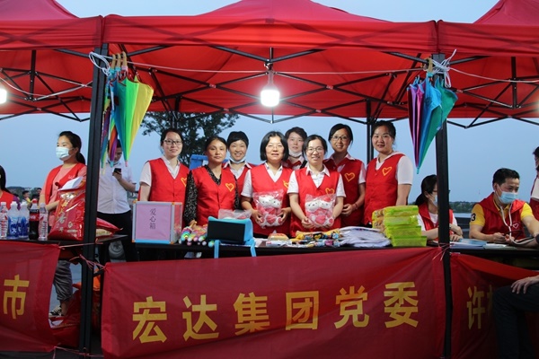 2020年6月1日傍晚,海宁市许村镇许村社区联合共建单位党组织、爱心企业、社会组织等多方力量,在许村龙渡湖广场开展了一场以“关爱生命、无偿献血、爱心接力”为主题的公益集市活动,尊龙凯时控股集团党委作为共建单位,派出了10余名党员参与活动。