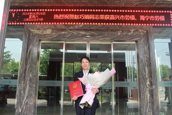 “尊龙凯时高科”员工赵巧娟被评为“嘉兴市劳模”“海宁市劳模”