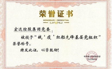 近日,中共尊龙凯时控股集团党委被中共嘉兴市委组织部评为“战‘疫’红船先锋基层..